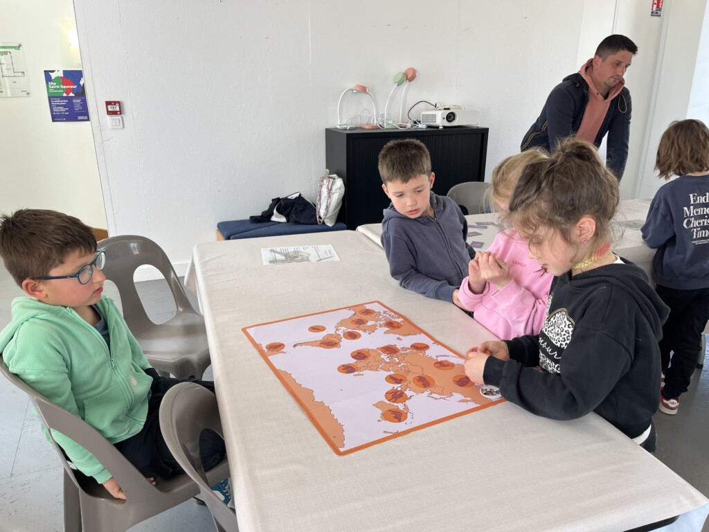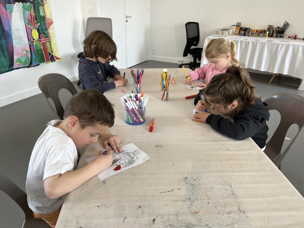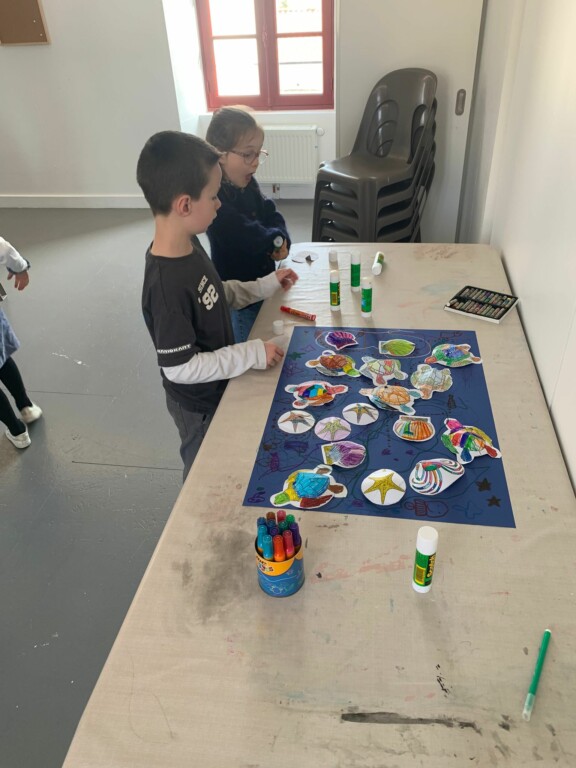 Le premier atelier était consacré à la réalisation d’une œuvre collective. Chaque élève a décoré son propre animal marin. Toutes les productions ont ensuite été rassemblées pour former une belle création commune.